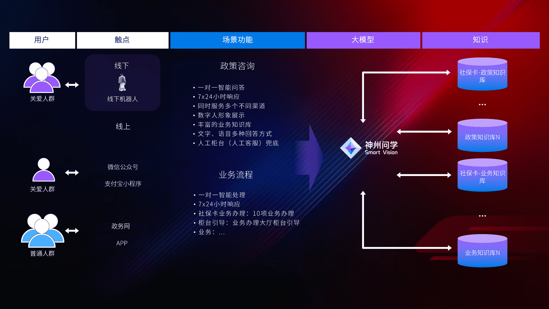 • 线上线下全覆盖:线上提供微信公众号、、、支付宝小程序、、、政务网、、、、app多种渠道,,与线下机器人形成完整服务体系。。。